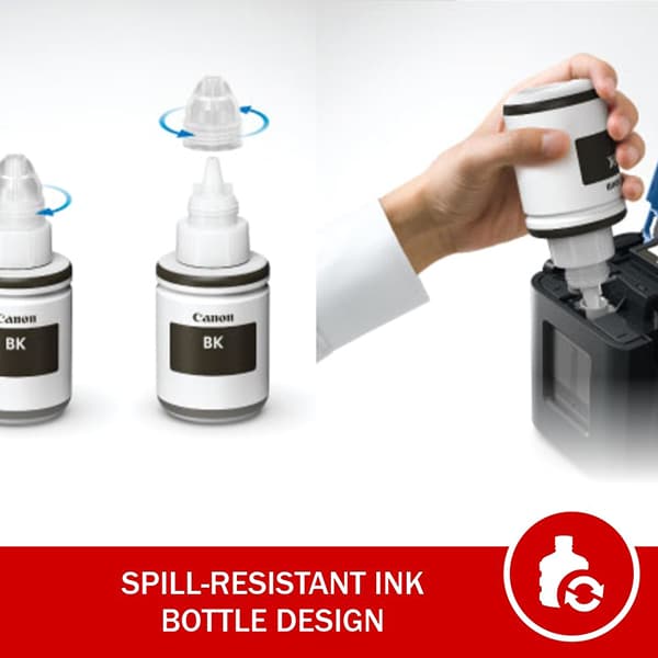 Enabling hassle-free and clean filling, The individual bottles fits onto the designated ink tank nozzle and ink filling stops automatically once the ink tank is full.