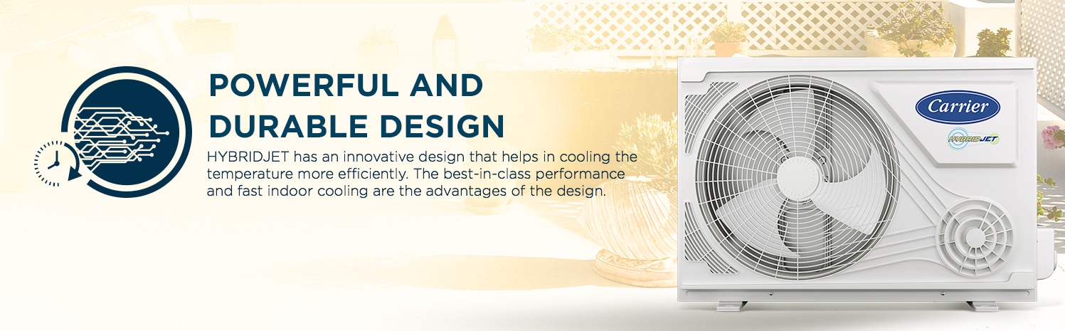 HYBRIDJET has an innovative design that helps in cooling the temperature more efficiently. The best-in-class performance and fast indoor cooling are the advantages of the design.