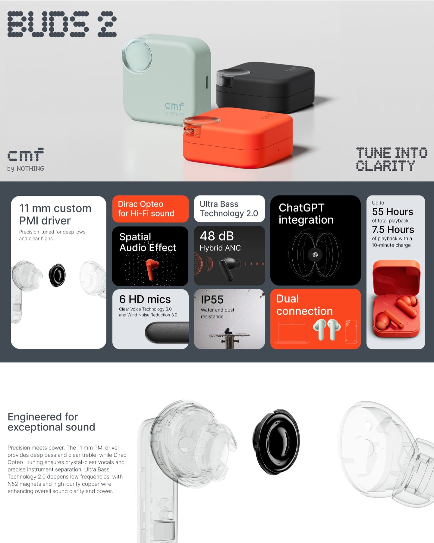 CMF by Nothing Buds 2 Active Noise Cancelling TWS, Light Green