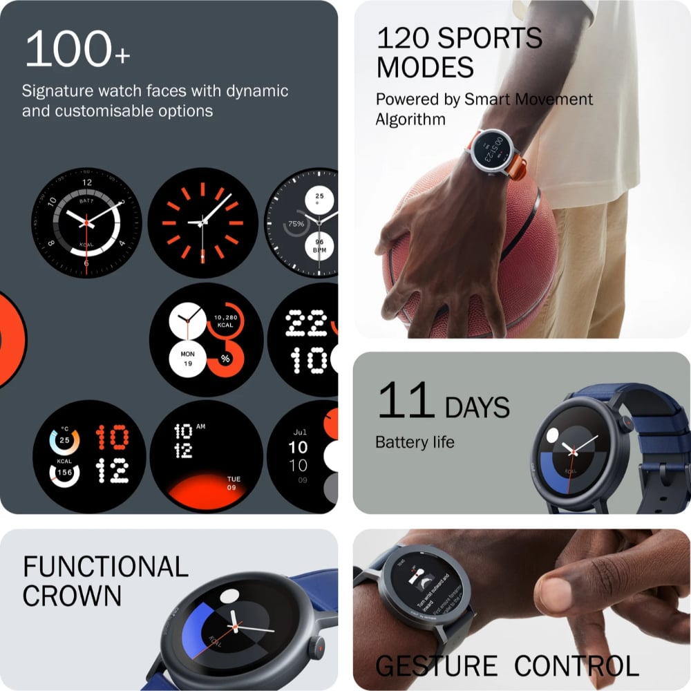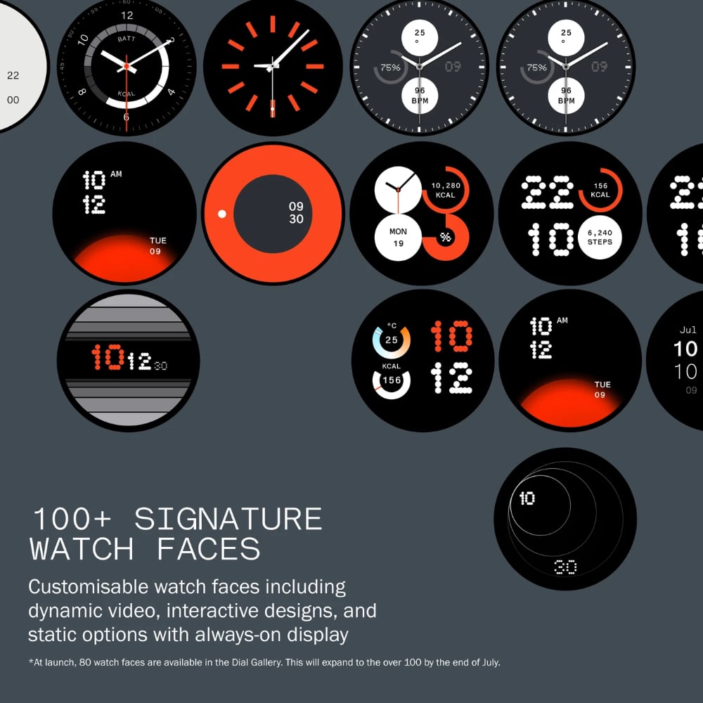 - 3.35 cm (1.32 inch) AMOLED Display with Auto Brightness