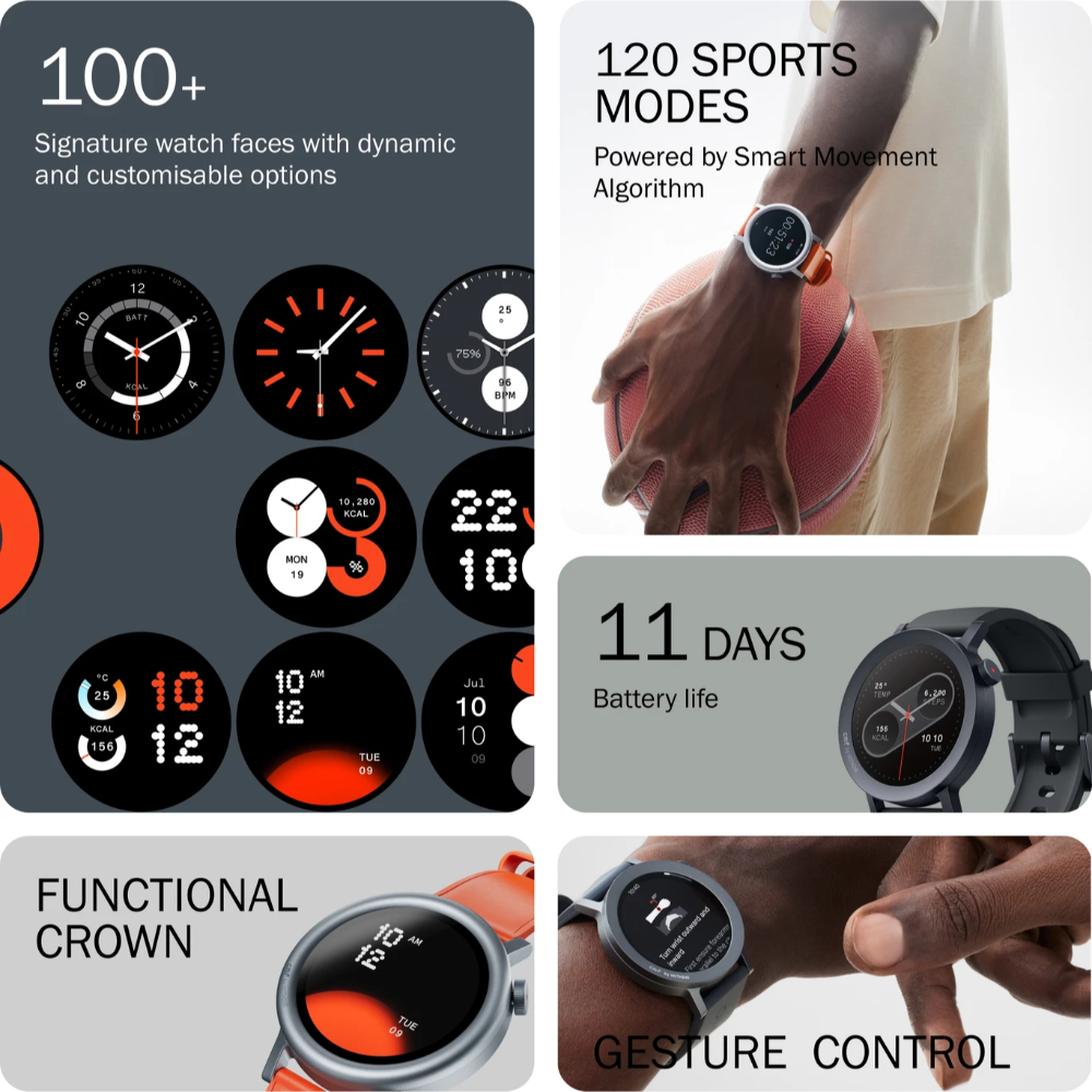 - 3.35 cm (1.32 inch) AMOLED Display with Auto Brightness