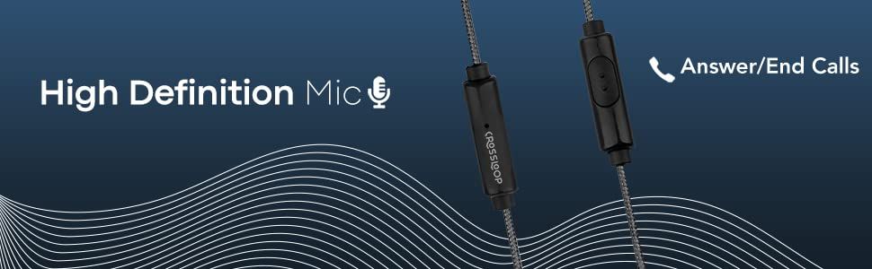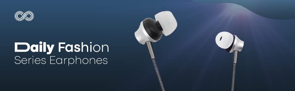Crossloop Daily Fashion Series Wired in Ear Earphone with Mic, 2x Bass sound signature, Block ambient noise, Special sturdy cable, Multifunction button (Silver)