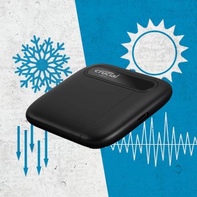 The Crucial X6 is tested to withstand a 6.5-foot drop, and is shock, vibration, and extreme temperature resistant — safeguarding your important files wherever you go.