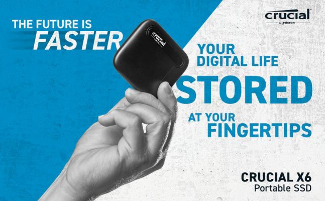 How much can you carry between the tips of your fingers? With the Crucial X6 Portable SSD, the answer is: A lot! Whether you're downloading videos for offline travel, organizing family photos, collaborating with classmates, or heading off on a great adventure, the Crucial X6 is affordable, and ready to go wherever you do.