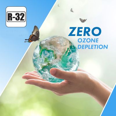 R32 (Green Refrigerant) has zero Ozone Depletion Potential (ODP) and Modified Global Warming Potential (GWP) of 472, compared to R410A’s Modified GWP of 2,027. Also R32 is a single component refrigerant, which makes it easy to recycle. It is because of these reasons that R32 offers the lowest total emissions and best overall life cycle climate performance.
