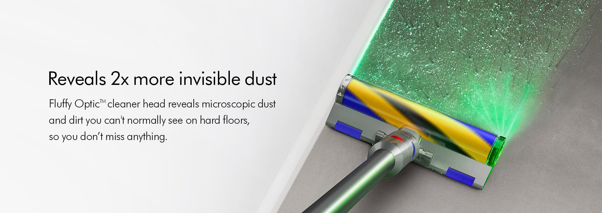 - Fluffy Optic cleaner head illuminates the particles you can't normally see