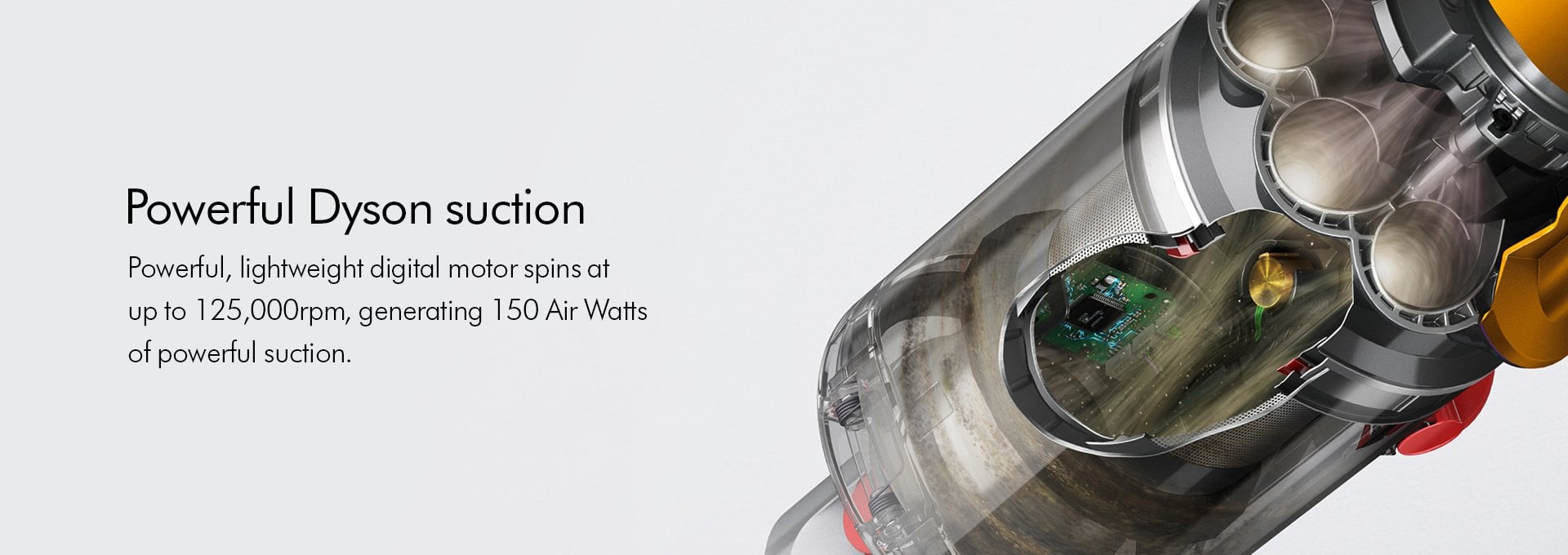 - Dyson's lightest cord-free vacuum with 150 AW of powerful suction