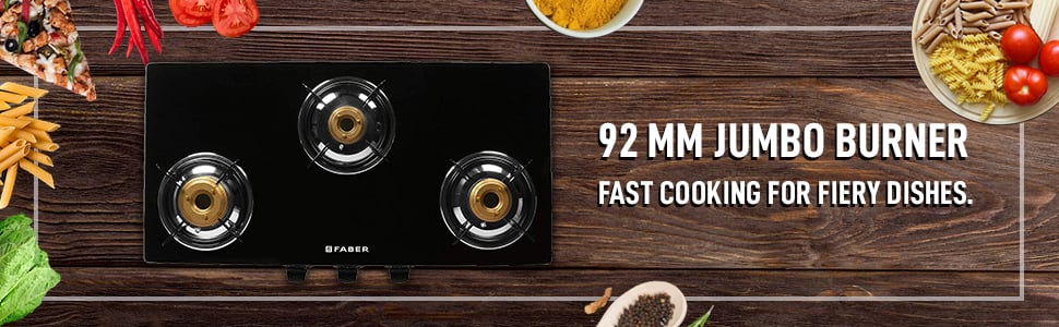 Faber cooktop comes with 1 jumbo (92 mm) to keep up large utensils. With safety, it also delivers resistance from corrosion and high heat.