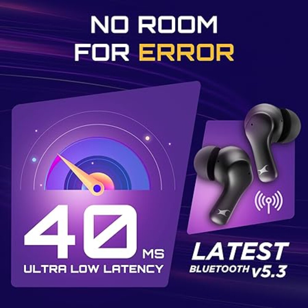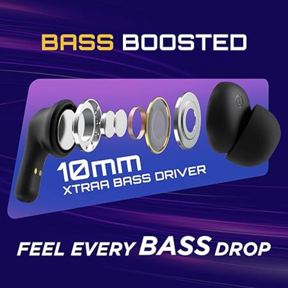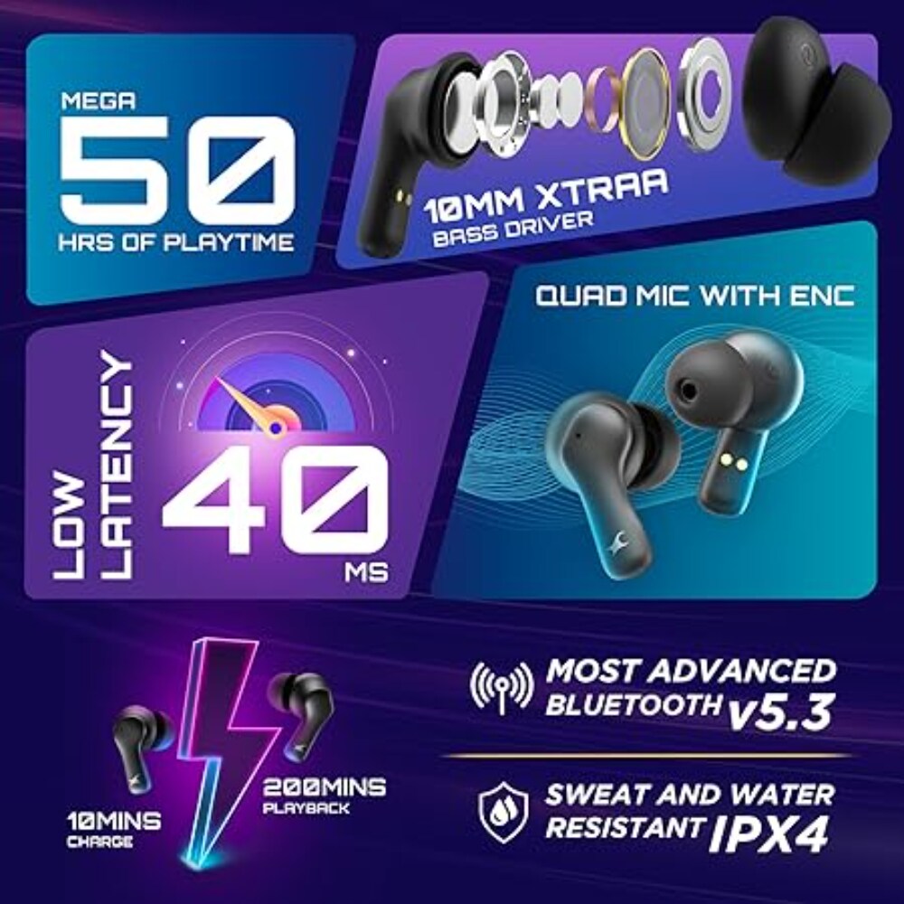 Fastrack Fpods FZ100 BT v5.3 TWS Earbuds, Mega 50 Hrs Playtime, Extra Deep Bass, Quad Mic ENC for Crystal Clear Calls, Ultra Low Latency Gaming Mode Upto 40 ms, 3C NitroFast Charge - 200 Mins in 10 Mins