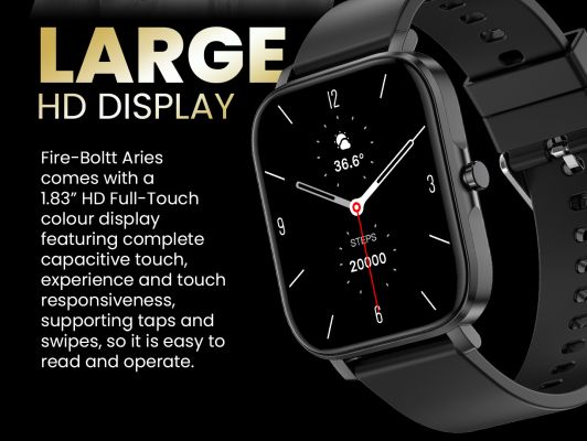 Fire-Boltt Aries Smartwatch, 4.64 cm (1.83 Inch) HD Display, 120 Sports Modes, IP68 Water Resistant, Remote Control Camera, Weather Updates, Social App Notifications & Reminders, PINK, (Offer on Online Payment)