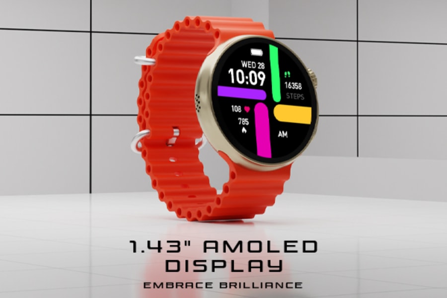 Fire-Boltt Asteroid 1.43 inch (3.63 cm) Super AMOLED Display Smart Watch, One Tap Bluetooth Calling, 466 x 466 px Resolution, 123 Sports Modes, in-Built Voice Assistance, 350mAh Large Battery (Orange)