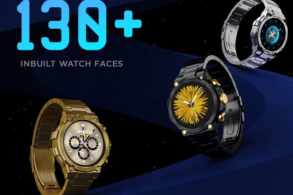 - 3.63 cm (1.43 inch) AMOLED Always-On Display, 466 x 466 pixels Resolution, Touchscreen, Stainless Steel Straps, 2 Button Pushers & 1 Rotating Crown