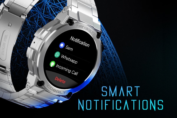 - 3.63 cm (1.43 inch) AMOLED Always-On Display, 466 x 466 pixels Resolution, Touchscreen, Stainless Steel Straps, 2 Button Pushers & 1 Rotating Crown