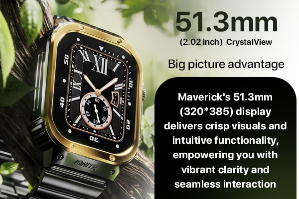 - Limitless Visuals: The Maverick smartwatch stuns with its expansive 5.13 cm (2.02 inch) IPS big screen, delivering vibrant colours and razor-sharp detail at 320 x 385 pixels resolution, ensuring your digital world comes alive on your wrist
