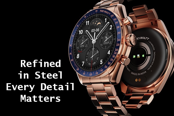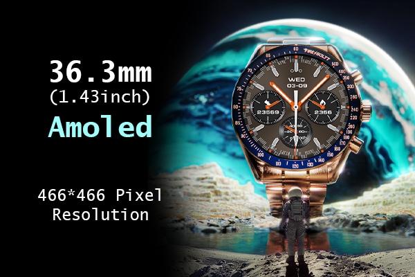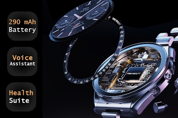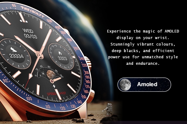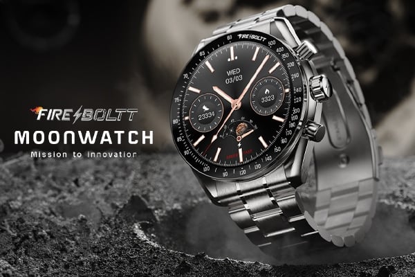 Fire-Boltt Moonwatch Smart Watch with 36.3 mm (1.43 inch) Amoled Display, Wireless Charging, Metallic Frame, Stainless Steel Luxury Strap, Complete Health Suite, Bluetooth Calling & Sports Modes (Black)