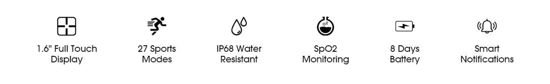 - IP68 Water Resistant, SpO2 Monitoring