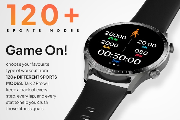 Fire-Boltt Talk 2 Pro Smartwatch, 3.5 cm (1.39 inch) Round TFT Display with Dual Button, Bluetooth Calling with Hands On Voice Assistance, 120 Sports Modes, in Built Mic & Speaker with IP68 Rating (Black)