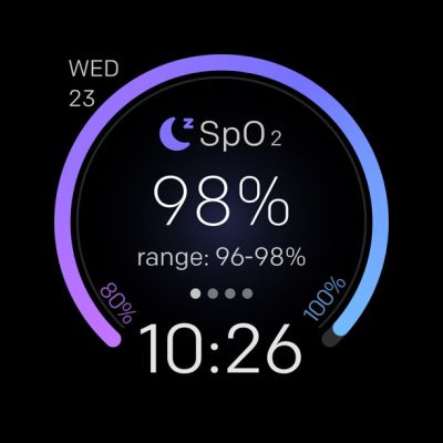 See your average nightly SpO2 level at a glance with this free clock face and view your trends over the past week in the Fitbit app.