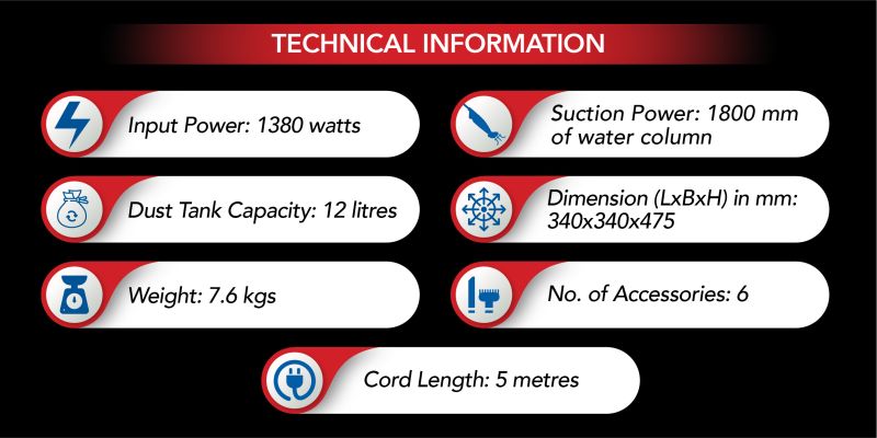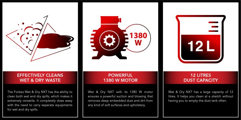 Forbes Wet and Dry NXT Compact Vacuum Cleaner with 12 litres Dust Capacity