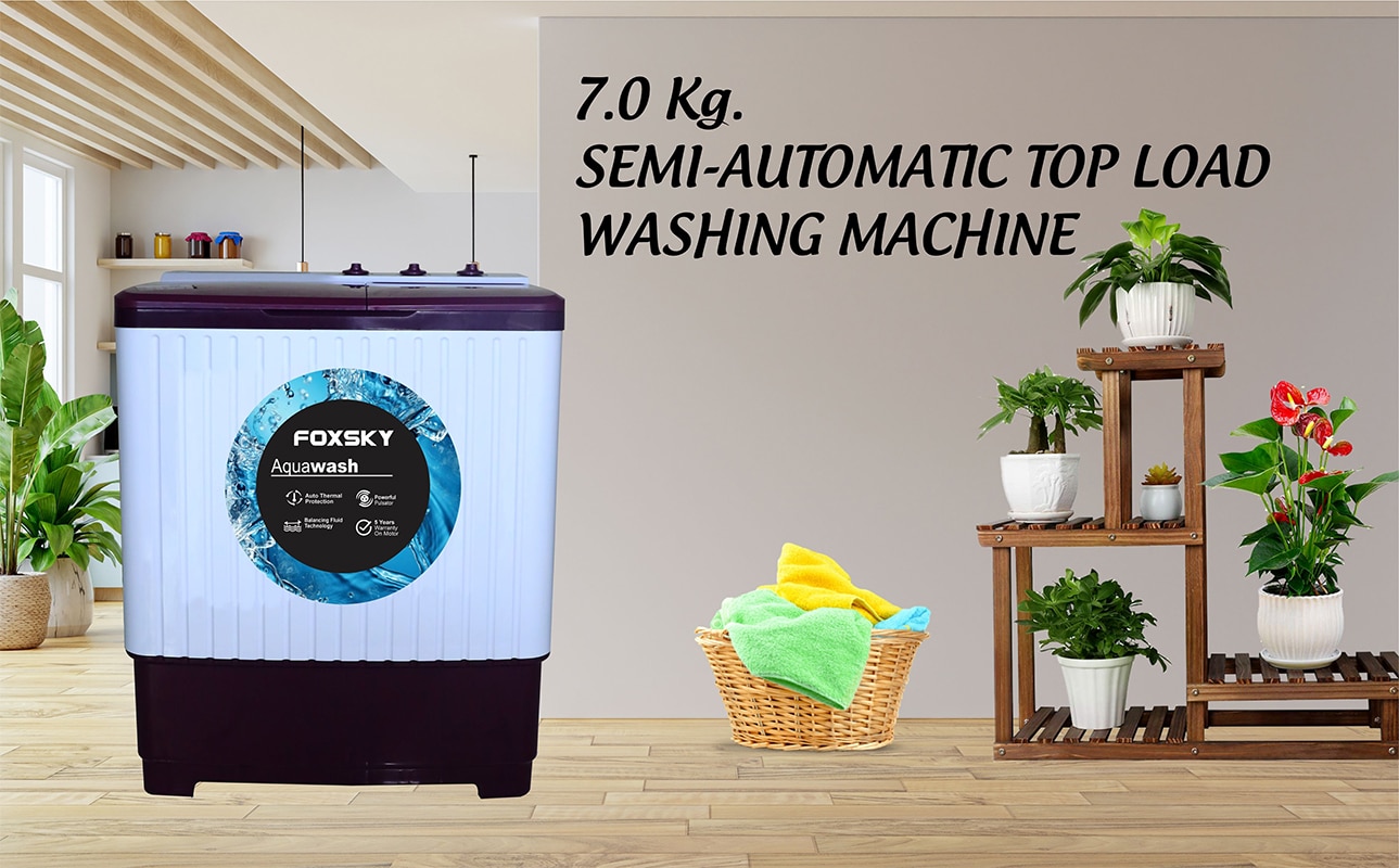 Foxsky 7 Kg Top Loading Semi-Automatic Washing Machine with 3D Scrub Technology, Aqua Wash, Maroon