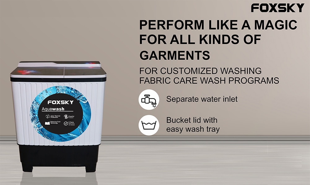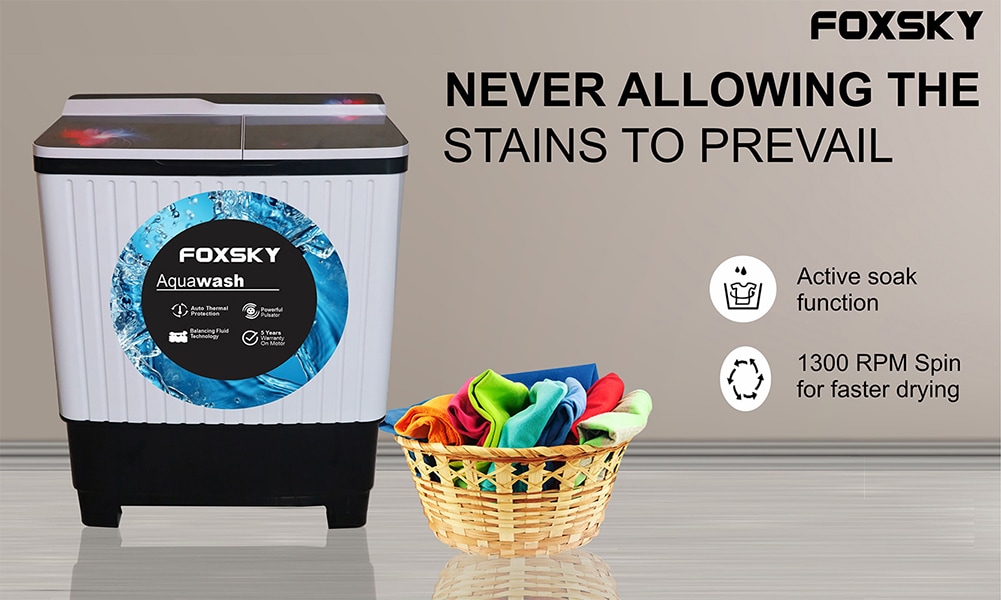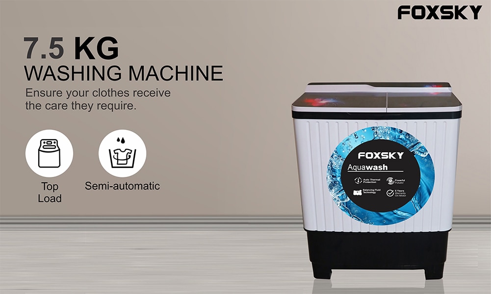 Foxsky 7.5 Kg 4 Nobs Top Loading Semi-Automatic Washing Machine with 3D Scrub Technology, Aqua Wash, Maroon