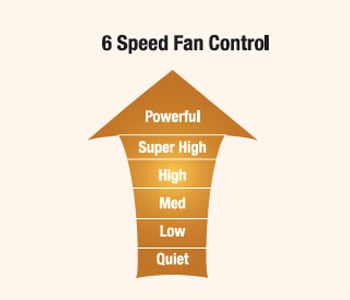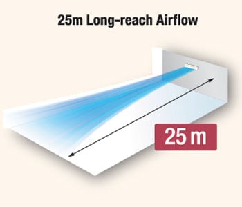 - 25 m Long Reach Airflow, 6 Speed Fan Control