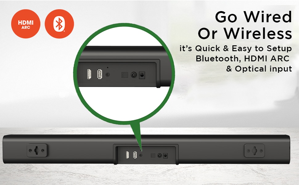 All your devices are made accessible by the wireless, wired and other forms of connectivity, viz. Bluetooth v5.0, AUX, USB, HDMI(ARC) and Optical Input.