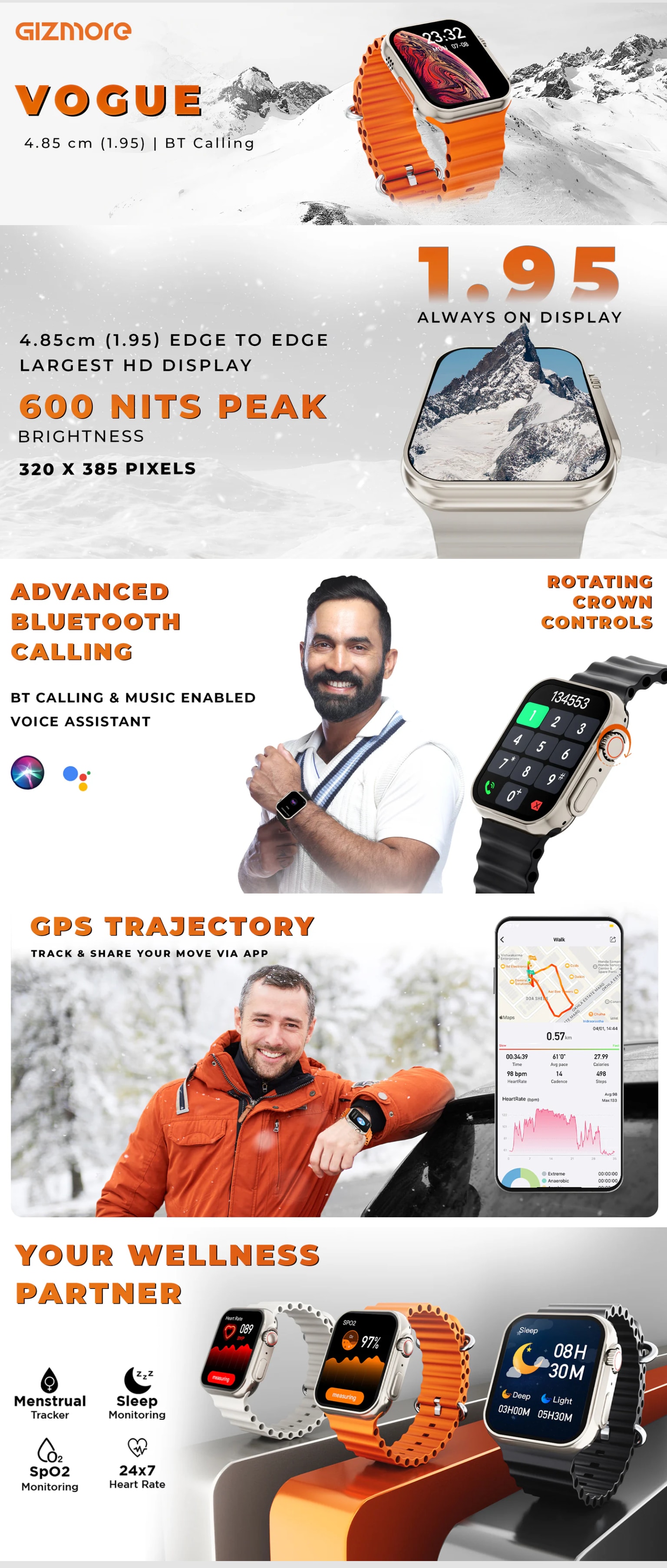 Gizmore Gizfit Vogue Smartwatch with Always On Display, Black