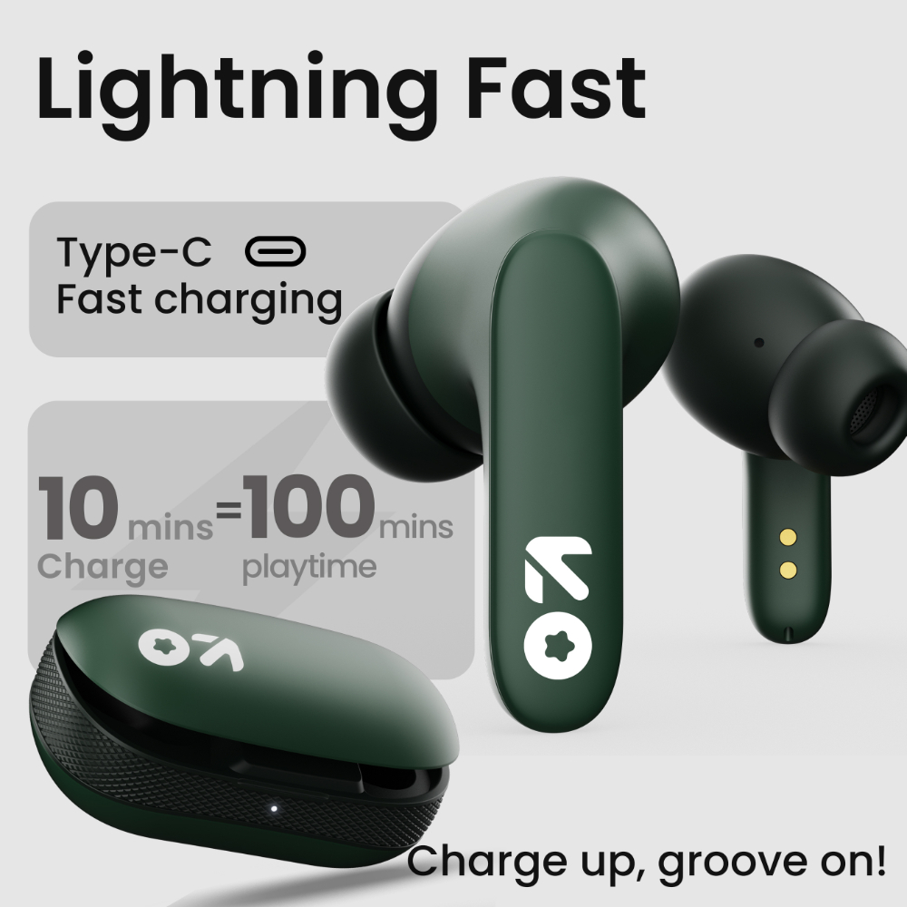 GOBOULT TWS Y1 True Wireless Earbuds with ZEN Tech ENC Dual Mics, 50 Hours Playtime, Rich Bass BoomX Technology and IPX5 Water Resistant (Green)