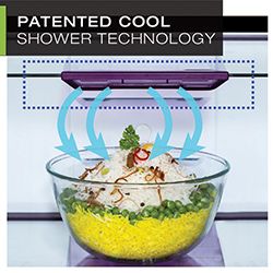 A first in the world, Godrej Eon's Cool Shower Technology comprises of shelves with in built air vents. Placed directly above the food, these vents ensure superior cooling.