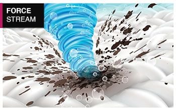 Water gushes out at high pressure, to mix the detergent better & provide a hard hitting motion from the top as well