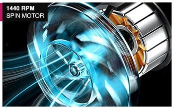 The 1440 RPM Spin Motor facilitates better and faster drying