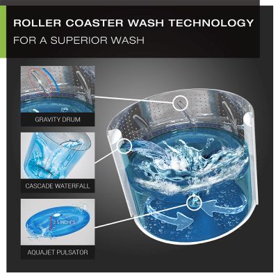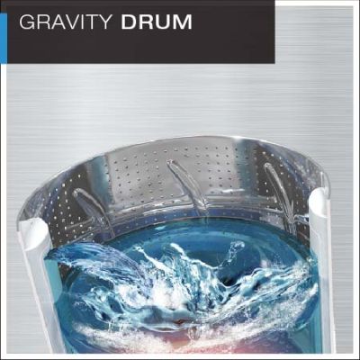 The contours inside the Gravity Drum facilitates cloth movement in five different ways for more scrubbing action, resulting in dirt removal.