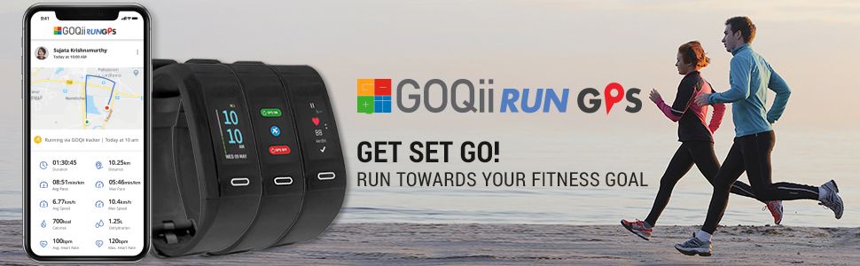 - DescriptionTrack your daily fitness activities with the super-cool GOQii Run GPS Fitness Band, Black. It comes with waterproof and swim friendly. This band is compatible with both Android and iOS devices. The built-in heart rate monitor checks your heart rate in real time which helps you plan out your workout routine in a way that will improve your health quotient.