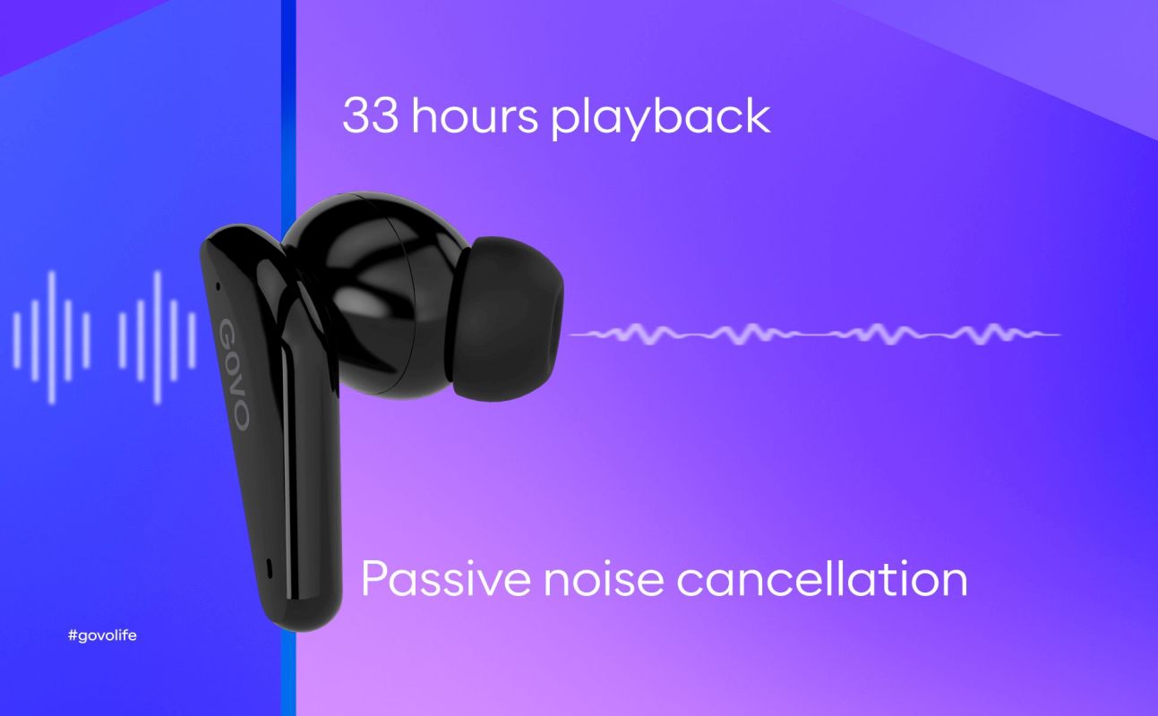GOVO GoBuds 600 True Wireless Bluetooth Earbuds with Up to 33 Hour Battery Life, Platinum Black
