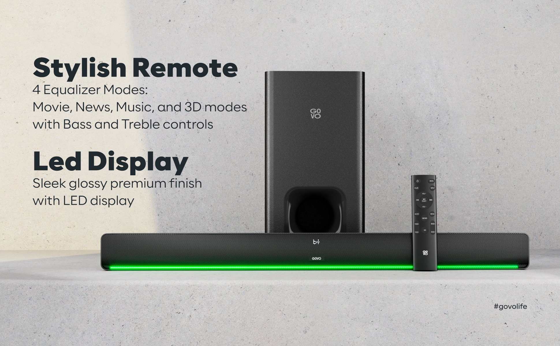 - 4 Equalizer Modes: Switch through Movie, News, Music & 3D modes, and enjoy your home cinema experience