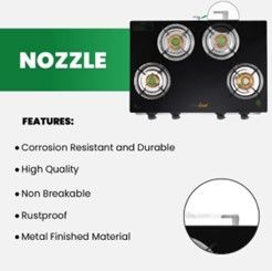 It helps in connecting to gas without bending the pipe. This gas stove is equipped with 360-degree nozzle which is rust proof and non- breakable, The Nozzle can be turned in any direction depending on the Gas pipeline location.