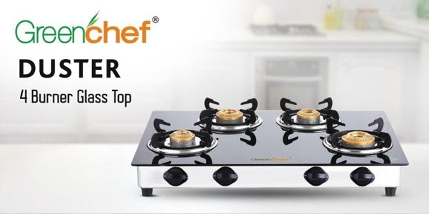 Greenchef four burner gas stove is crafted with an elegant glass top and stainless-steel body which looks beautiful in any kitchen. You can cook four dishes simultaneously as it features four thermal efficient brass burners. Its glass top finish perfectly complements your kitchen’s decor. It is an excellent choice for your kitchen. The four burners are spaced out well enough to let you cook large dishes side-by-side. This gas stove comes with shatter-proof toughened glass top of 6mm thickness for cleaning convenience. Greenchef DUSTER Gas Stove is ISI Certified, which assures quality.