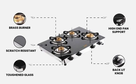 The knobs are designed to provide comfort and safety while cooking. The knobs are easy to handle and requires less maintenance. With four ergonomic knobs, one can easily adjust the flame and heat of the burners.