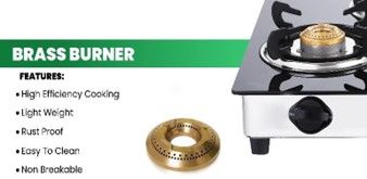 Greenchef DUSTER glass cooktops are equipped with strong brass burners which ensure an even flame distribution for a consistent heating. These burners are high efficiency and long lasting. The high-quality burner gives safe and time-saving cooking experience with consistent flames and these four brass burners are light weight as well as rust proof.