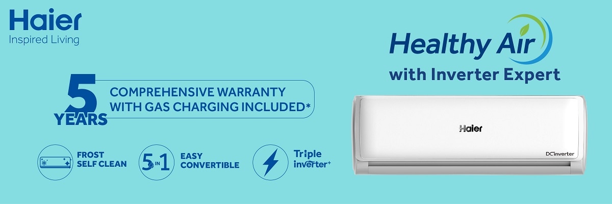 Haier 1 Ton 3 Star Triple Inverter+ Split AC, HSU12C-TBS3B (100 percent Copper, 50 Feet Airflow, Hyper PCB, Cools even at 60 C Ambient Temperature,Self Clean technology)