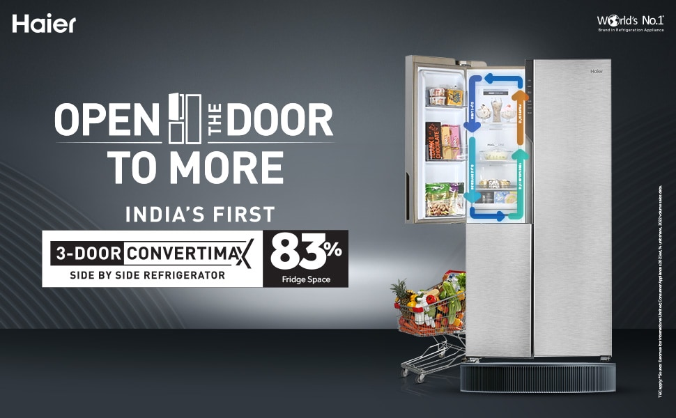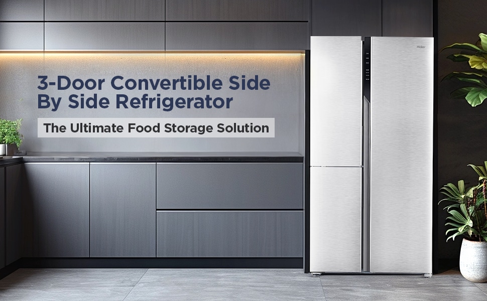 Haier 598 L 3-Door Convertible Side by Side Refrigerator, Inox Steel, HRT-683ISU1