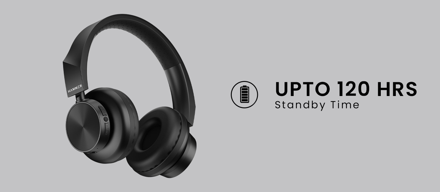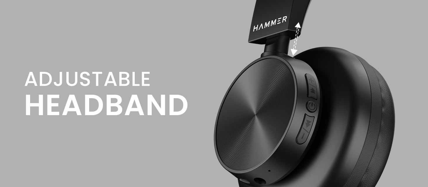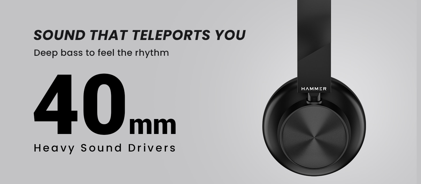 HAMMER Bash Lite Bluetooth Headphones with Mic, Deep Bass, 40 mm Drivers, 10 Hours Playtime, Bluetooth v5.3 Head Phones Best for Travel or Gym, Best Headphones with Wired and Wireless Mode (Black)