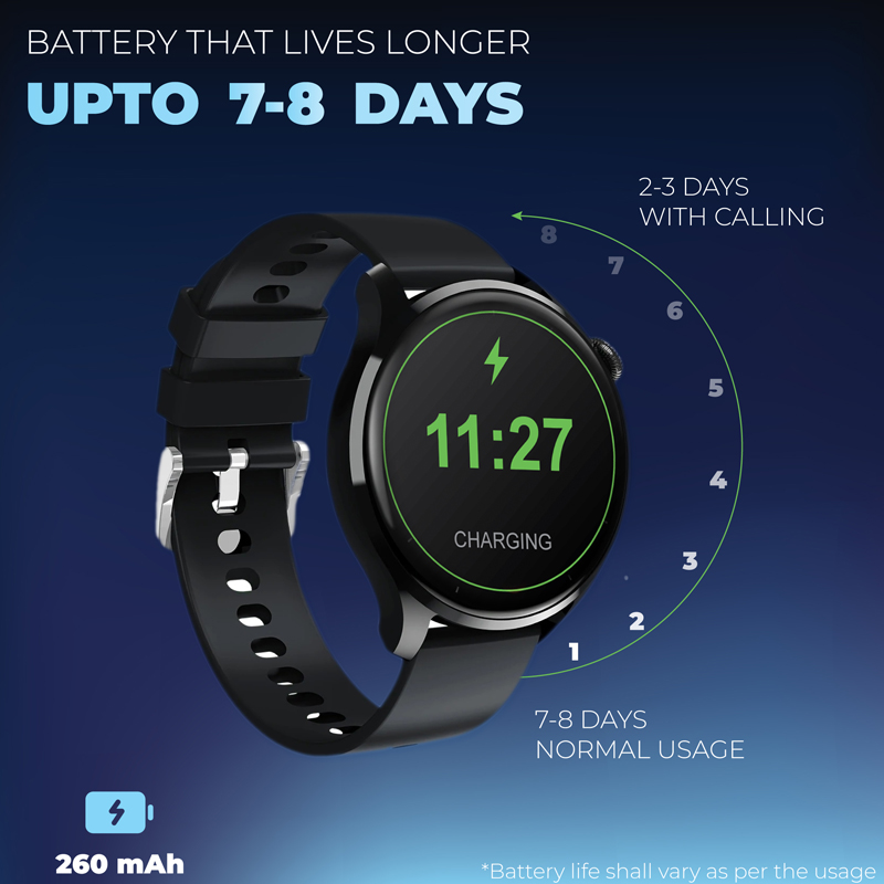 Hammer Pulse 4.0 Smartwatch, 3.25 cm (1.28 inch) Round Dial , Bluetooth Calling, Upto 8 Days Battery, IP67 Dust & Water Resistant, SpO2 & Heart Rate Monitor (Black)