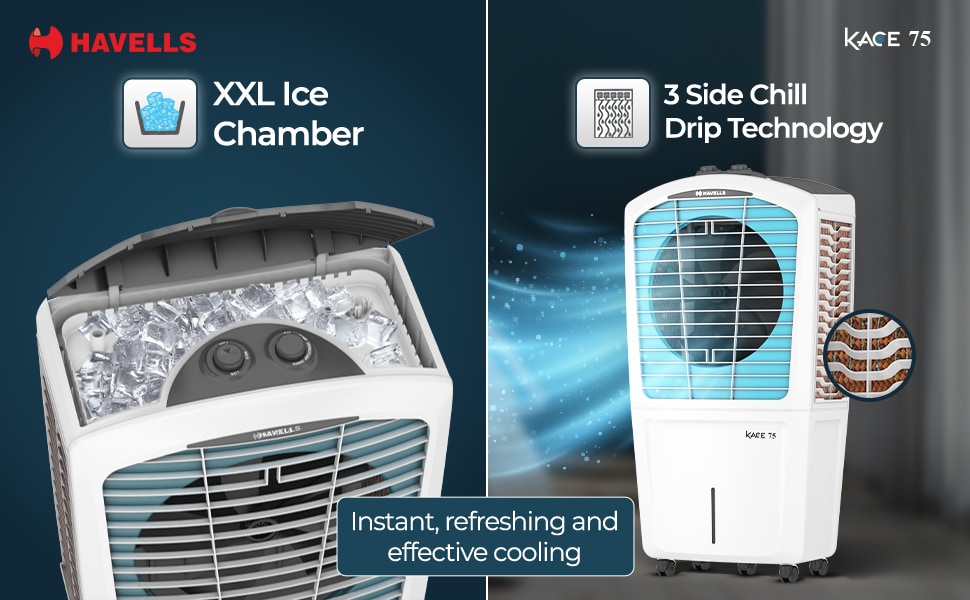 Havells Kace 75 GHRACAMF220 Desert Air Cooler with 75 Litres Capacity, White and Blue
