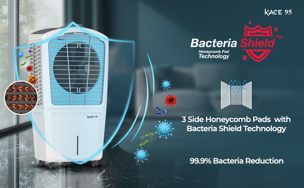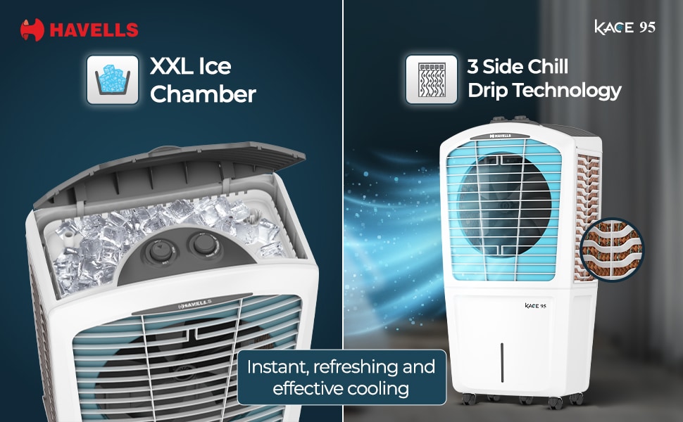 Havells Kace 95 GHRACAMB008 Desert Air Cooler with 95 Litres Capacity, White and Blue