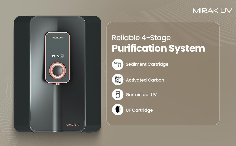 Havells Mirak 6 L RO + UV + Alkaline Water Purifier, Black