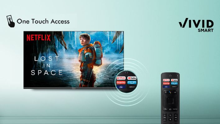 - Our user-centric approach extends well beyond the screen to a highly customized remote control as well. Here you can find dedicated content buttons to access your favourite apps like Netflix, Youtube, Google Play in an instant.