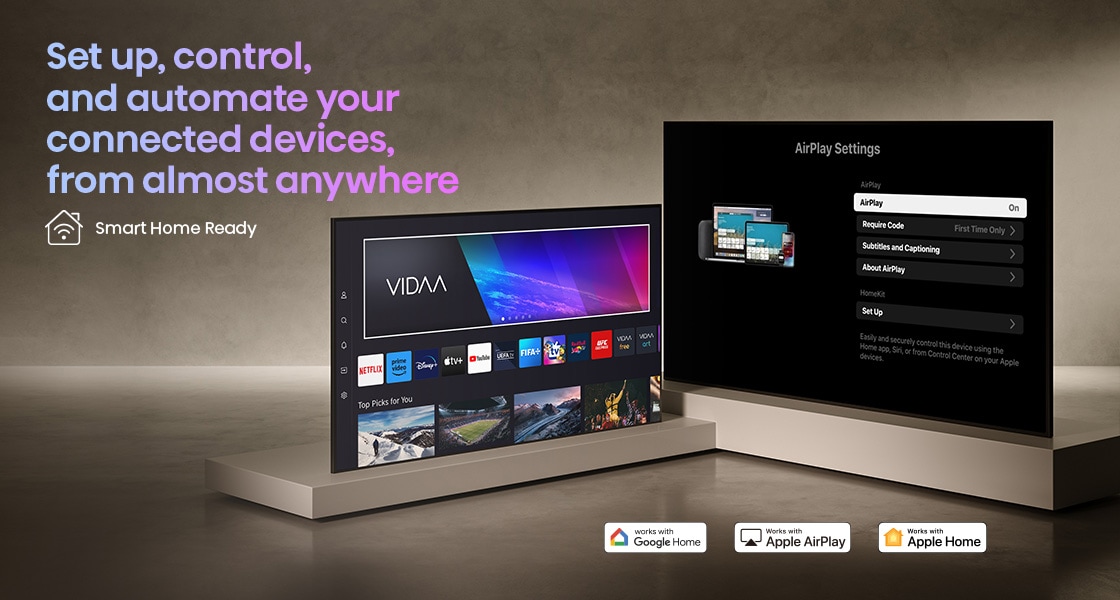 Hisense TV works with Google Home to easily set up, control, and automate your connected devices, from almost anywhere. With Apple AirPlay, you can stream movies, music, games, and photos to your television right from your iPhone, iPad, or Mac. And because your television is compatible with Apple Home, you can control it on your iPhone, iPad, Apple Watch, HomePod mini, or Mac using Apple Homekit technology.