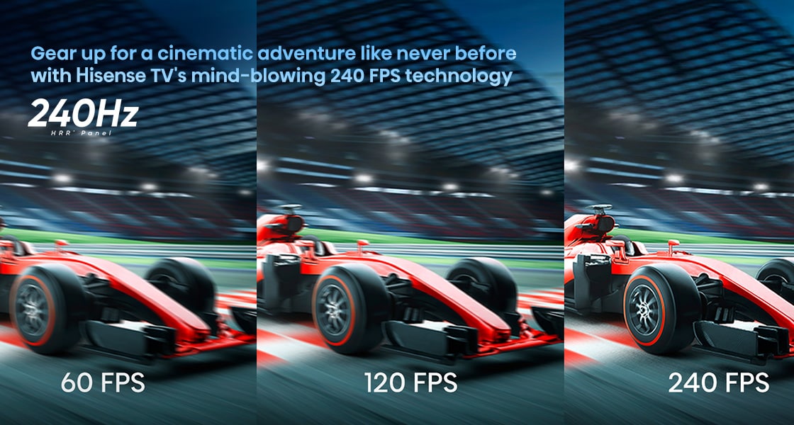 Let every movement and every detail come to life with pristine clarity and unmatched smoothness. Get ready to be fully immersed in the thrill of fast-paced sports. adrenaline-pumping gaming, and action-packed cinema: with Hisense's 240 FPS. you won't miss a beat.